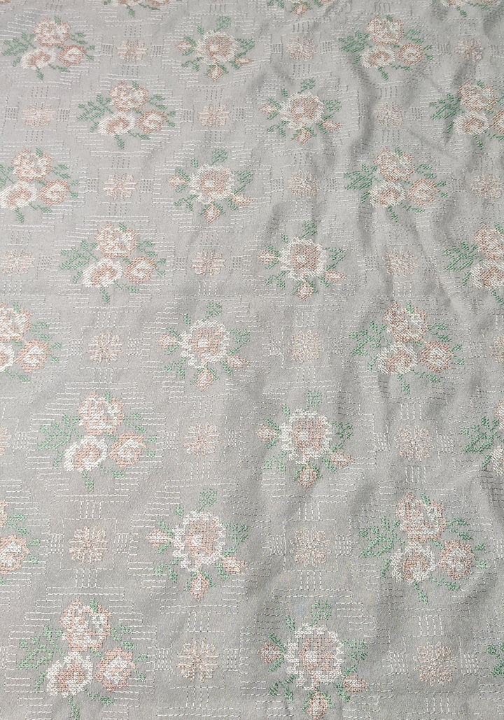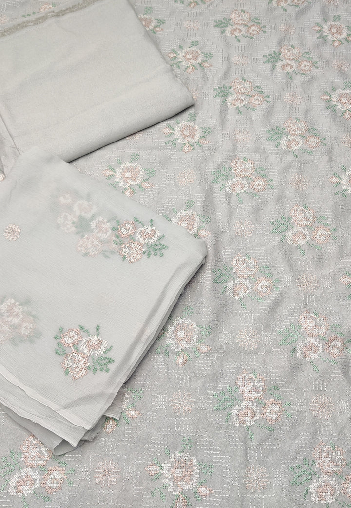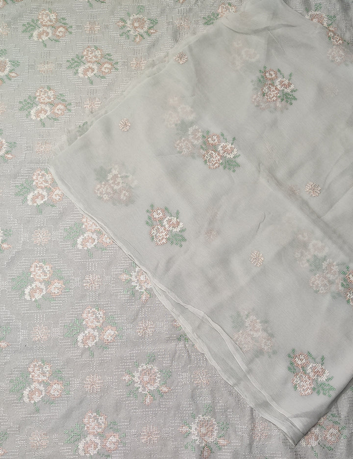Peach leather emb 3pc suit with emb chiffon dupatta